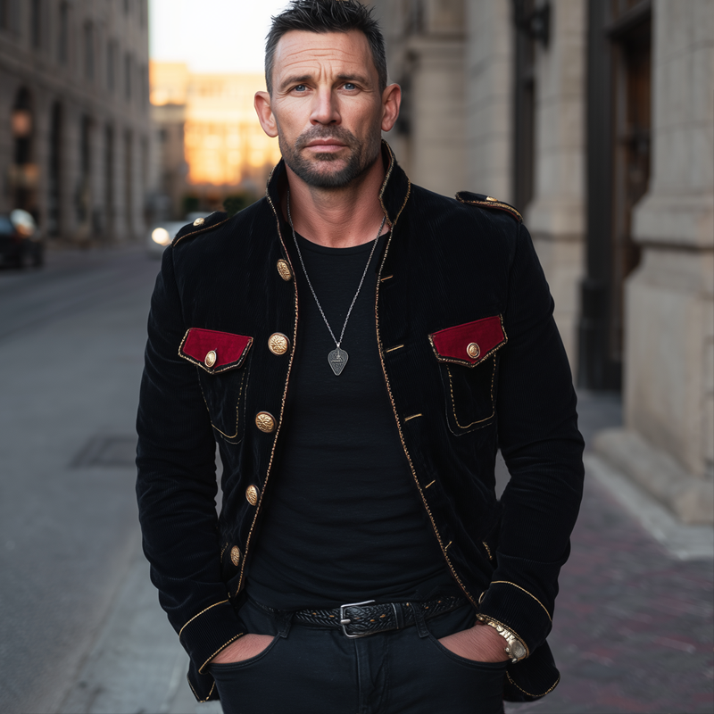 Men's Vintage Velvet Stand-Collar Multi-Button Embroidered Slim-Fit Jacket MTA1188K3U