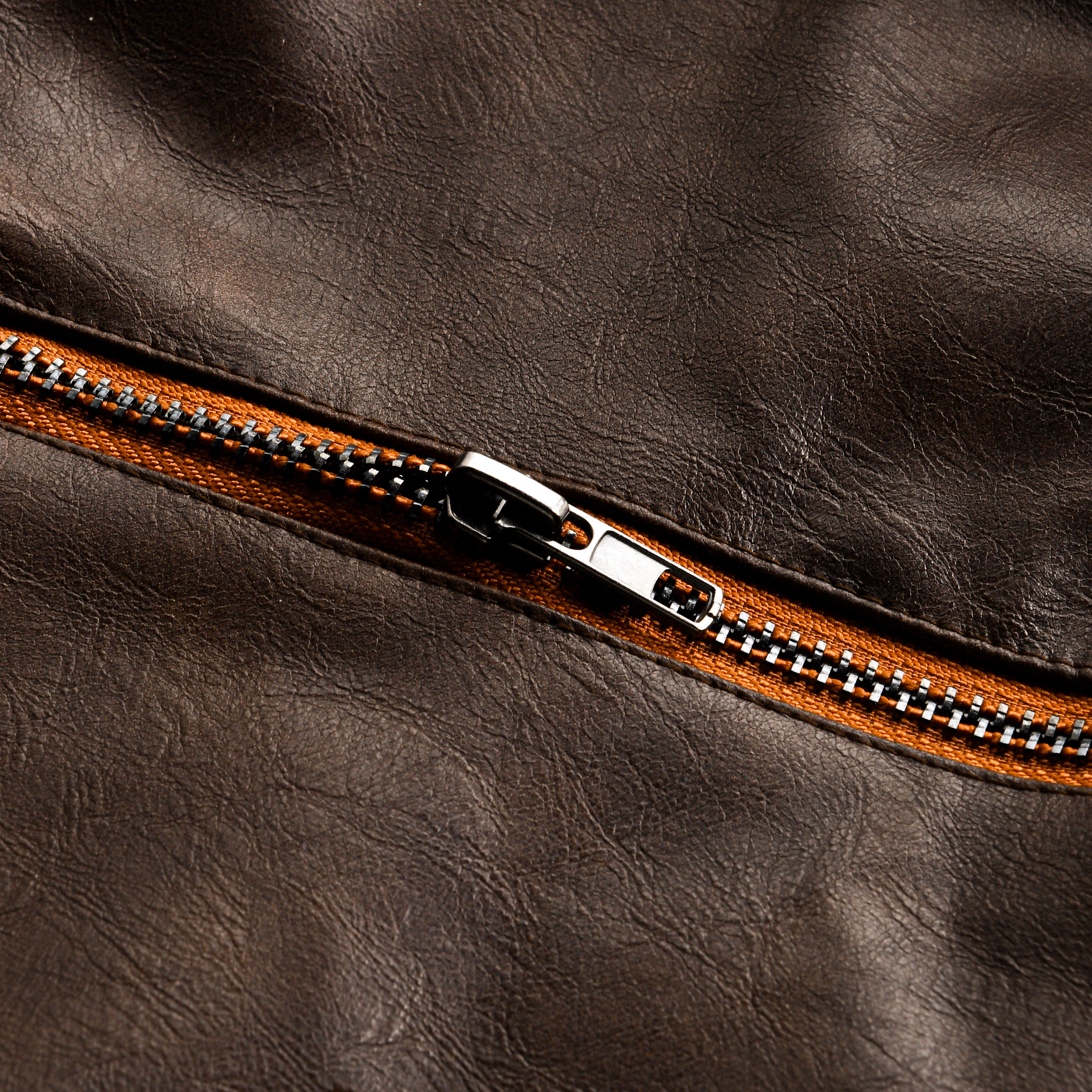 Details: The vintage zipper design, soft leather texture, and detailed stitching add personality and craftsmanship to the jacket. The hardware, including zippers and snaps, are made from durable materials, contributing to the jacket’s tough, premium look.